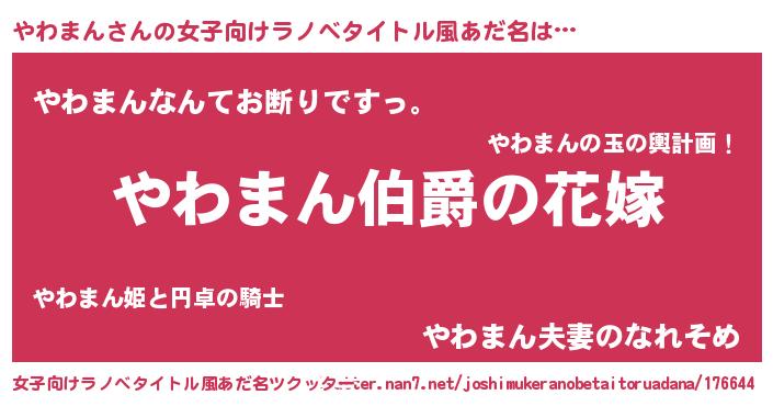 | ファンタジー風あだ名 | 『エターナルヤワマンー』『ゼヤワトゥ』 |