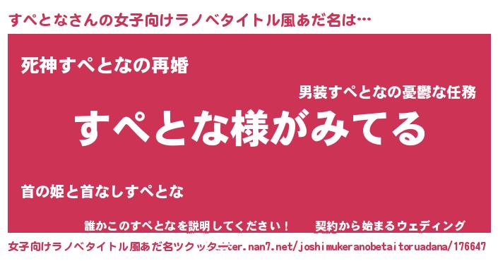 | 男性向けラノベタイトル風あだ名 | 『すぺとなの嫁は女の子じゃないと思った?』 |