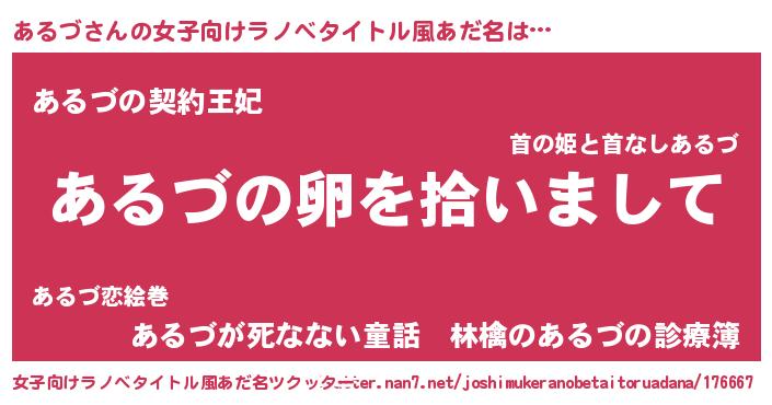 | 意味不明あだ名 | 『とにかく怪しいあるづ』 |