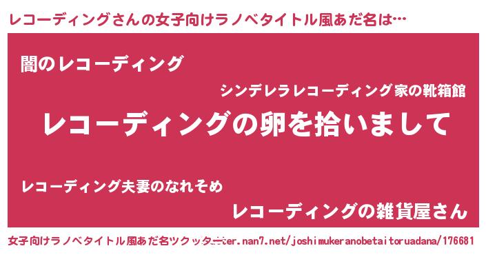 | 胡散臭い通販商品みたいなあだ名 | 『伝統あるサプリメント…その名も「レコーディング」』 |