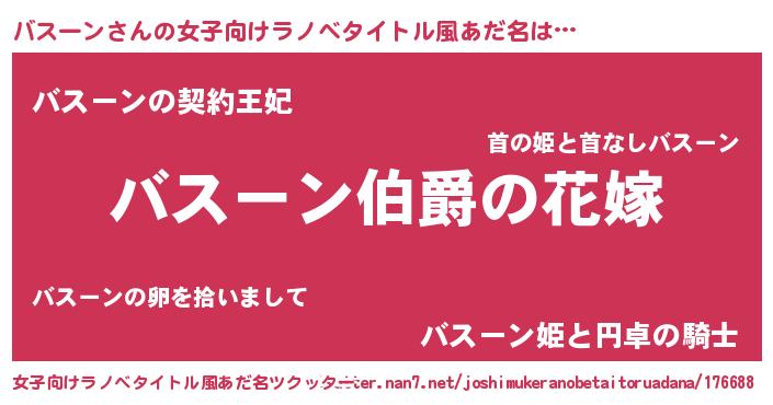 | ヘコむあだ名 | 『豆乳』『バスーン(爆)』『バスにー』 |
