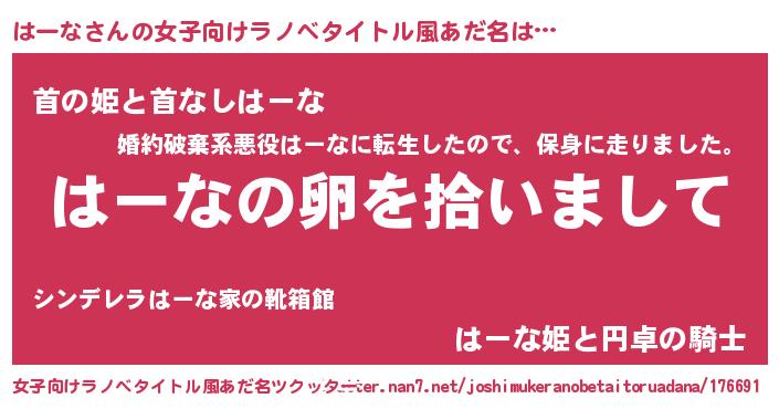 | 胡散臭い通販商品みたいなあだ名 | 『伝統あるサプリメント…その名も「はーな」』 |