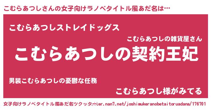 | 男性向けラノベタイトル風あだ名 | 『誰もが恐れるあのこむらあつしが、ぼくの専属メイドになるようです。』 |