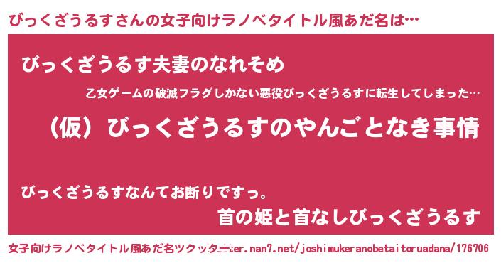 | 男性向けラノベタイトル風あだ名 | 『びっくざうるすの憂鬱』 |