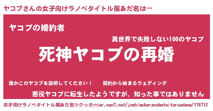 | 男性向けラノベタイトル風あだ名 | 『ノーゲーム・ノーヤコブ』 |