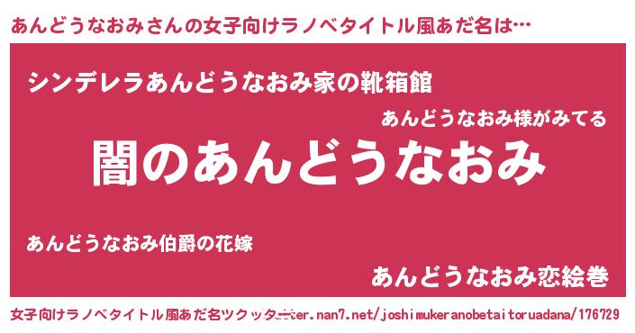 | 男性向けラノベタイトル風あだ名 | 『Re:あんどうなおみから始める異世界生活』 |