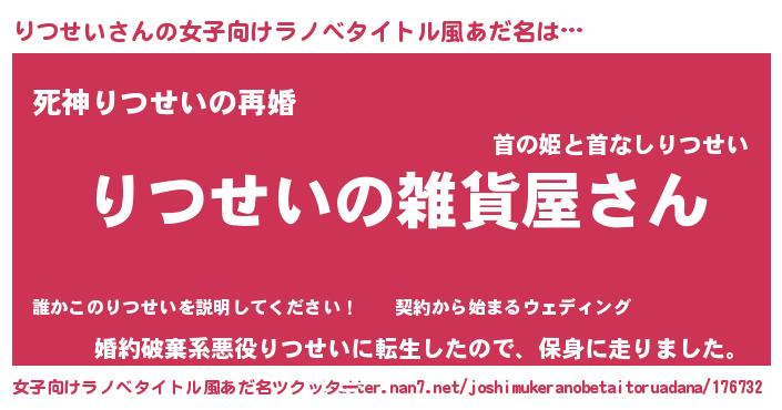 | 男性向けラノベタイトル風あだ名 | 『やはりりつせいの青春ラブコメはまちがっている 』 |