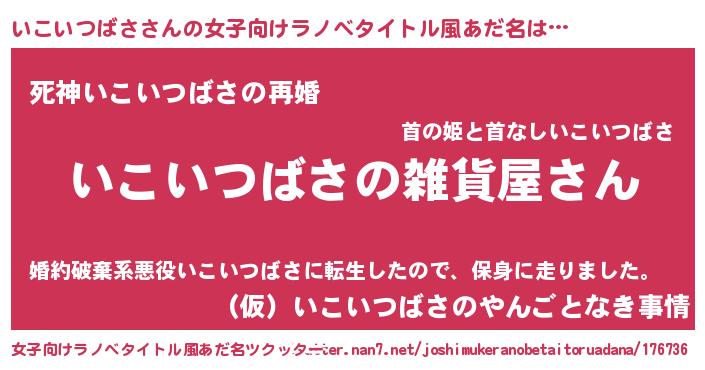 | 胡散臭い通販商品みたいなあだ名 | 『幸せが訪れる高級そうな絵画…その名も「いこいつばさ」』 |