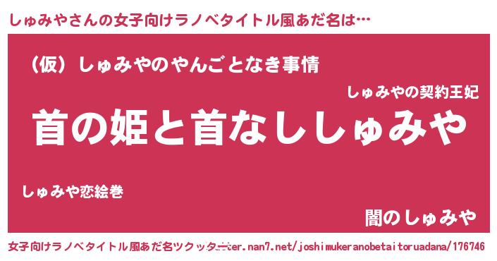 | 意味不明あだ名 | 『ペロリンしゅみや』『自称しゅみや』 |