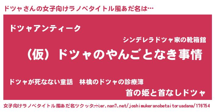 | 男性向けラノベタイトル風あだ名 | 『ドツャの憂鬱』『魔法科高校のドツャ』 |