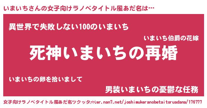 | ヘコむあだ名 | 『いまいち(笑)』『牛乳』『いまお』 |