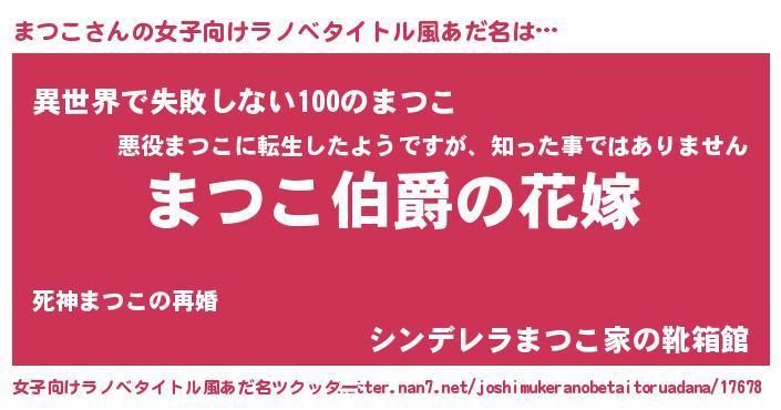 | 男性向けラノベタイトル風あだ名 | 『やはりまつこの青春ラブコメはまちがっている 』 |