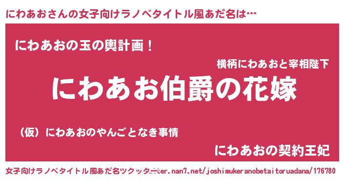 | 肩書あだ名 | 『にわあお総理大臣』『にわあお大佐』 |