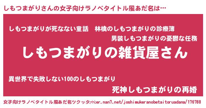 | 男性向けラノベタイトル風あだ名 | 『やはりしもつまがりの青春ラブコメはまちがっている 』 |