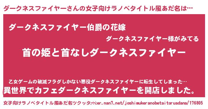 | 男性向けラノベタイトル風あだ名 | 『はたらくダークネスファイヤーさま!』 |