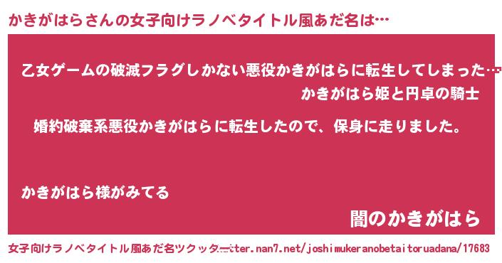 | 男性向けラノベタイトル風あだ名 | 『カキガハラスレイヤー』 |