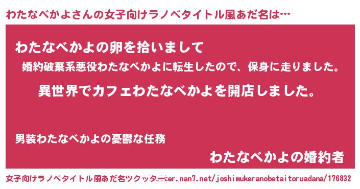 | 男性向けラノベタイトル風あだ名 | 『誰もが恐れるあのわたなべかよが、ぼくの専属メイドになるようです。』 |