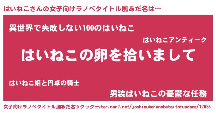 | 意味不明あだ名 | 『とにかく怪しいはいねこ』 |