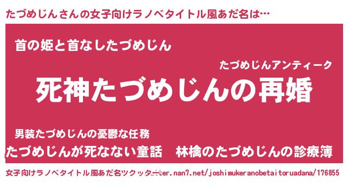 | ヒーロー風カッコイイあだ名 | 『慈愛の使者たづめじん』『仮面タヅダー』 |
