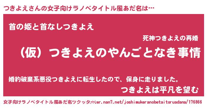 | 男性向けラノベタイトル風あだ名 | 『つきよえの憂鬱』 |