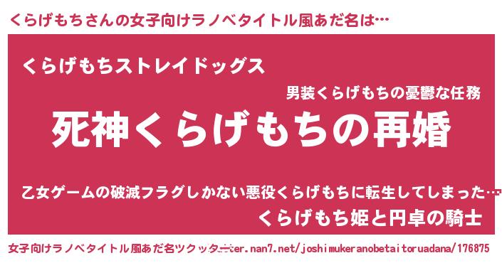 | 男性向けラノベタイトル風あだ名 | 『ノーゲーム・ノークラゲモチ』 |