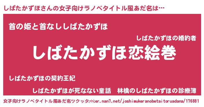 | 男性向けラノベタイトル風あだ名 | 『ノーゲーム・ノーシバタカズホ』 |