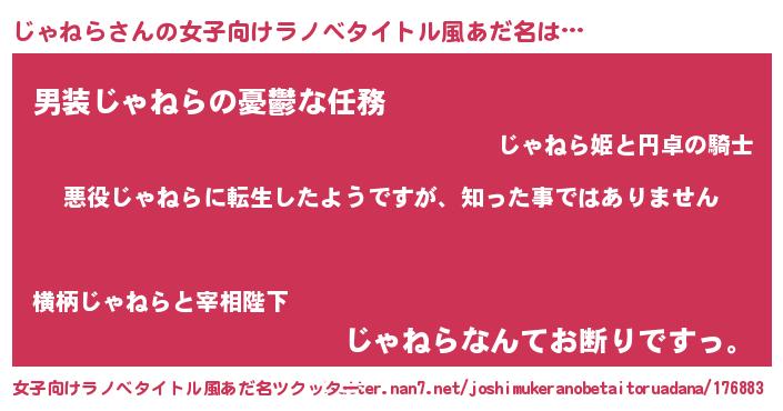 | 胡散臭い通販商品みたいなあだ名 | 『あなたにだけ特別に提供する限定10本のレアな日本酒…その名も「じゃねら」』 |