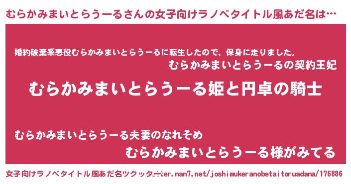 | 胡散臭い通販商品みたいなあだ名 | 『モテモテ間違いなし霊験あらたかなお札…その名も「むらかみまいとらうーる」』 |