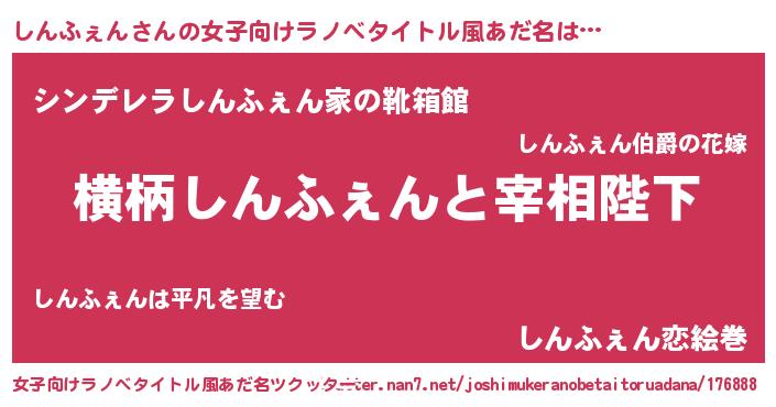 | 男性向けラノベタイトル風あだ名 | 『しんふぇんに滅ぼされるだけの簡単なお仕事です』 |