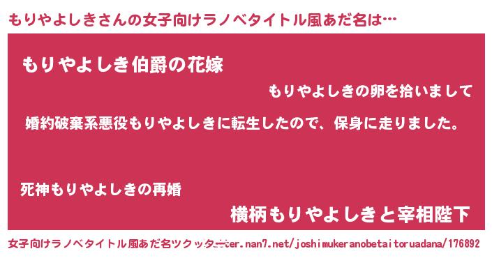 | 男性向けラノベタイトル風あだ名 | 『転生したらもりやよしきだった件』 |