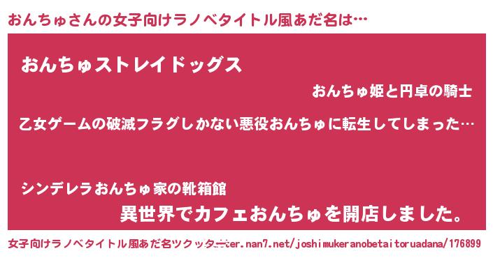| 男性向けラノベタイトル風あだ名 | 『魔弾の王とおんちゅ』『緋弾のオンチュ』 |