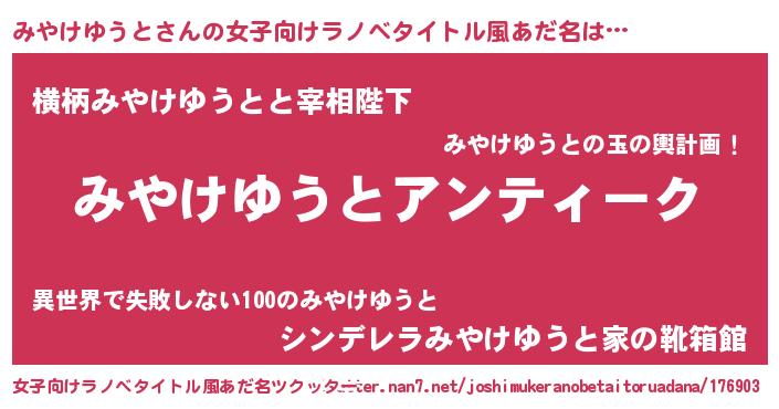 | 伝説のあだ名 | 『古より伝わる吟遊詩人みやけゆうと』 |
