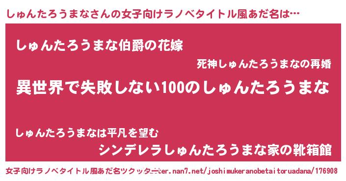 | 胡散臭い通販商品みたいなあだ名 | 『絶対に幸福をもたらす水素水…その名も「しゅんたろうまな」』 |