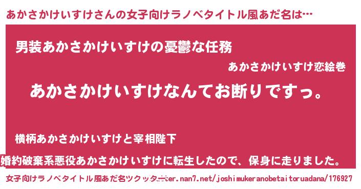 | 意味不明あだ名 | 『自称あかさかけいすけ』 |