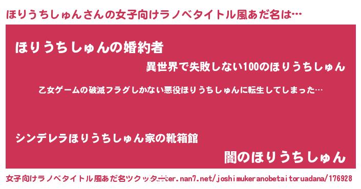 | 意味不明あだ名 | 『住所不定無職ほりうちしゅん(68歳)』 |
