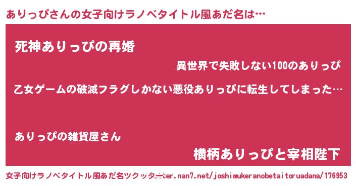 | 男性向けラノベタイトル風あだ名 | 『魔弾の王とありっぴ』 |