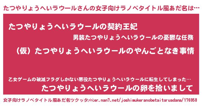| 男性向けラノベタイトル風あだ名 | 『たつやりょうへいラウールの憂鬱』 |