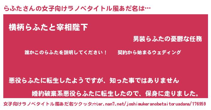 | 男性向けラノベタイトル風あだ名 | 『ラフタアートオンライン』 |