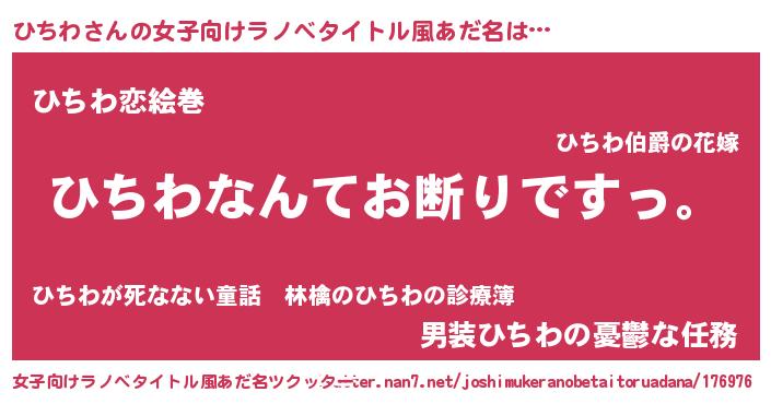 | 男性向けラノベタイトル風あだ名 | 『魔法科高校のひちわ』 |