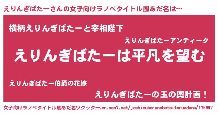 | 男性向けラノベタイトル風あだ名 | 『ダンジョンにえりんぎばたーを求めるのは間違っているだろうか』 |