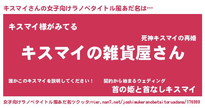 | ファンタジー風あだ名 | 『エターナルキスマイー』『クインキット』 |