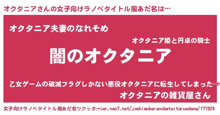 | 男性向けラノベタイトル風あだ名 | 『Re:オクタニアから始める異世界生活』 |