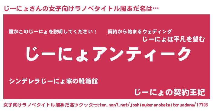 | 肩書あだ名 | 『じーにょ閣下』『じーにょ社長令嬢』 |
