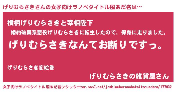 | 欧米人風あだ名 | 『ケンブリッジげりむらさき』 |