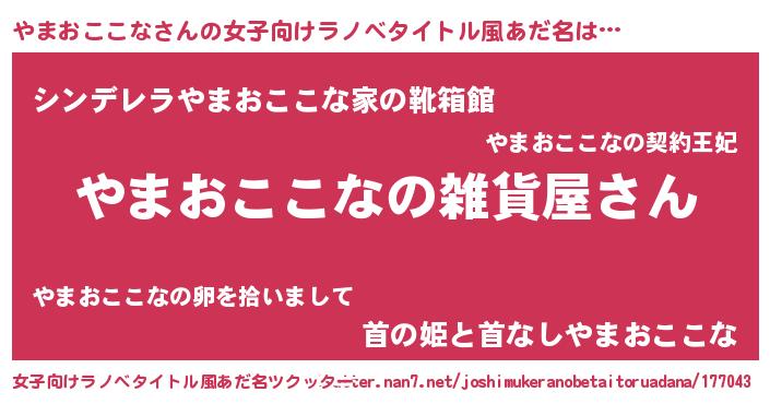 | 男性向けラノベタイトル風あだ名 | 『やはりやまおここなの青春ラブコメはまちがっている 』 |
