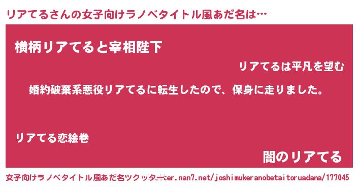 | 男性向けラノベタイトル風あだ名 | 『リアテルスレイヤー』 |