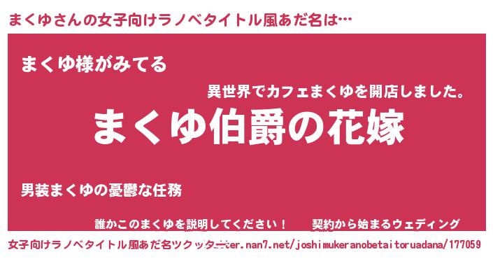 | 男性向けラノベタイトル風あだ名 | 『やはりまくゆの青春ラブコメはまちがっている 』 |