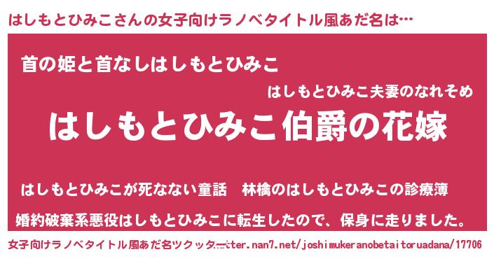 | 男性向けラノベタイトル風あだ名 | 『やはりはしもとひみこの青春ラブコメはまちがっている 』 |