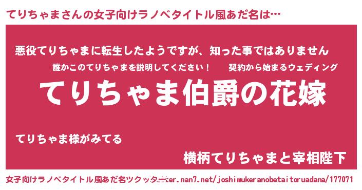| ファンタジー風あだ名 | 『エターナルテリチャマー』『テリフェル』 |