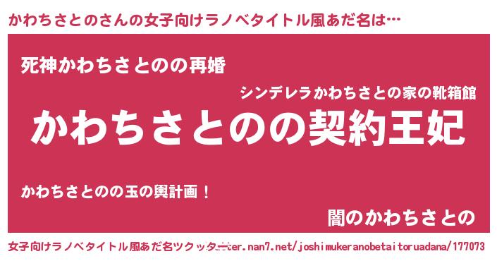 | 男性向けラノベタイトル風あだ名 | 『かわちさとのという概念が存在しない退屈な世界 』 |